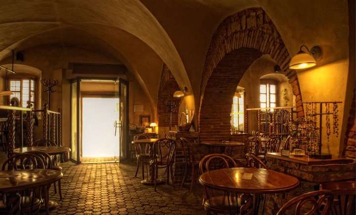 - Și tot din aceeași categorie, de locuri mai fancy, îți recomandăm Bella Muzica. Situat într-o clădire medievală, cu arcade de cărămidă și piatră, restaurantul are o atmosferă care se mulează perfect pe arhitectura locului.