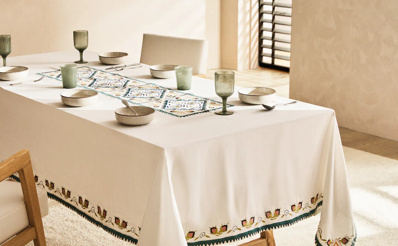 E drept că fețele de masă nu se mai folosesc astăzi atât de mult, mai ales când vine vorba de mesele luate acasă în mod uzual). Însă la zile speciale e frumos să ne dăm ceva mai mult străduința, să acordăm mai multă atenție detaliilor. O față de masă elegantă va da un cu totul alt aspect întregului „ansamblu”, iar nouă ne-au plăcut acestea, de la Zara Home. Una din in, cu imprimeu multicolor cu punct în cruce, care are ceva din aspectul tradițional românesc pe care îl apreciem atât de mult. Cealaltă, din bumbac, model floral brodat, care este extrem de frumoasă tocmai prin simplitatea și delicatețea ei. Intră pe site și ai să găsești și alte modele dacă acestea nu sunt chiar pe gustul tău.