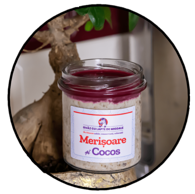 La Ohvăz găsești niște borcănașe cu ovăz cu lapte de migdale cu merișoare și cocos foarte bune!