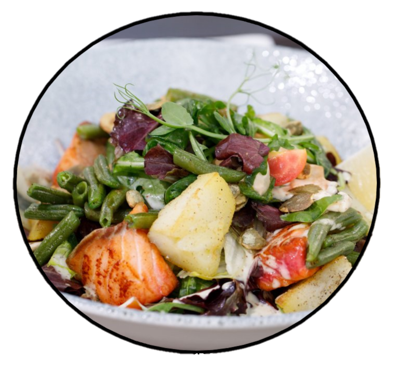 Și ca să știi… la Gram Bistro au o salată caldă cu somon (deco ai bonus și Omega 3), în care își găsesc foarte bine locul semințele de dovleac (pe lângă salată, cartofi, roșii cherry, fasole verde), totul legat bine cu un dressing de muștar și miere.
