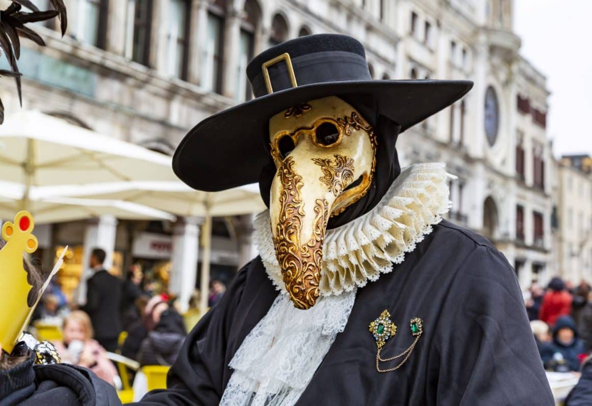 Masca Il Medico della Peste – are un cioc lung și ochii tăiați rotund, acoperiți cu discuri de cristal. Masca aceasta era îmbrăcămintea doctorilor de ciumă. A fost creată pentru a-l proteja pe doctor de infecție și a devenit un simbol al carnavalului. Însă pe cât de înspăimântătoare, pe atât era de utilă. În ciocul acela lung, ca de pasăre, se punea un amestec de ierburi medicinale, tot cu scop de protecție.