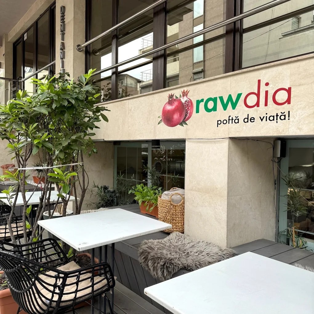 În zona Dorobanți, pe strada Puțul lui Zamfir nr. 50-52, se află un restaurant care este și magazin vegan și raw vegan: rawdia. La ei găsești tot felul de specialități – precum pâine dospită cu maia și pâinici raw, brânză Feta vegană, dar și gustări, pateuri, supe și creme, salate, deserturi și sucuri. Toate 100% naturale, preparate la temperatura corespunzătoare. În plus, ai la dispoziție meniul zilei, altul în fiecare zi, ca să te bucuri de diversitate, dar și de un echilibru nutritiv. I
