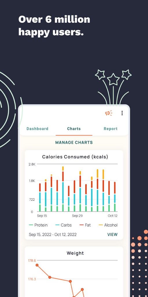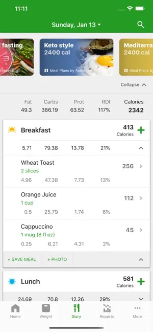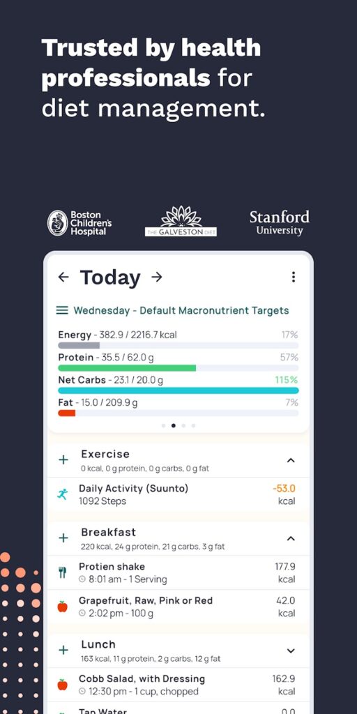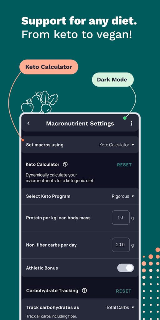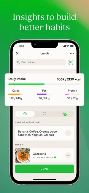 Oferă analize zilnice de nutrienți și mese, diagrame macro și acces la numeroase rețete – inclusiv vegane, vegetariene și fără gluten – și îți permite chiar să imporți rețete și să calculezi informațiile nutriționale ale acestora. Versiunea premium urmărește și micronutrienții și îți oferă acces la planificatoare de mese, planuri de dietă, monitorizare a tensiunii arteriale și a colesterolului și un tablou de bord axat pe diabet care urmărește glicemia și medicamentele.