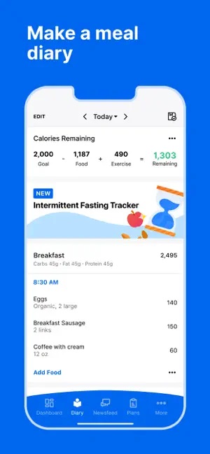 FatSecret este un contor de calorii gratuit. Include un jurnal alimentar, o bază de date nutrițională, rețete sănătoase, un jurnal de exerciții, un grafic de greutate și un jurnal.
