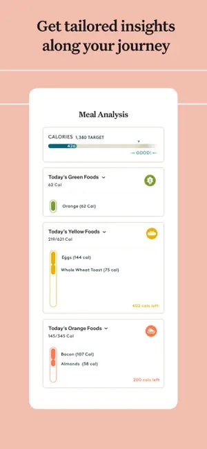 Noom te încurajează să urmărești numărul de calorii pe care le consumi în fiecare zi, dar și greutatea, cerându-ți să te cântărești cel puțin o dată pe zi. De asemenea, ajută la crearea planurilor de dietă fără a limita sau restricționa anumite alimente. Aplicația se concentrează pe calorii și nutrienți ca o modalitate de a promova pierderea în greutate.