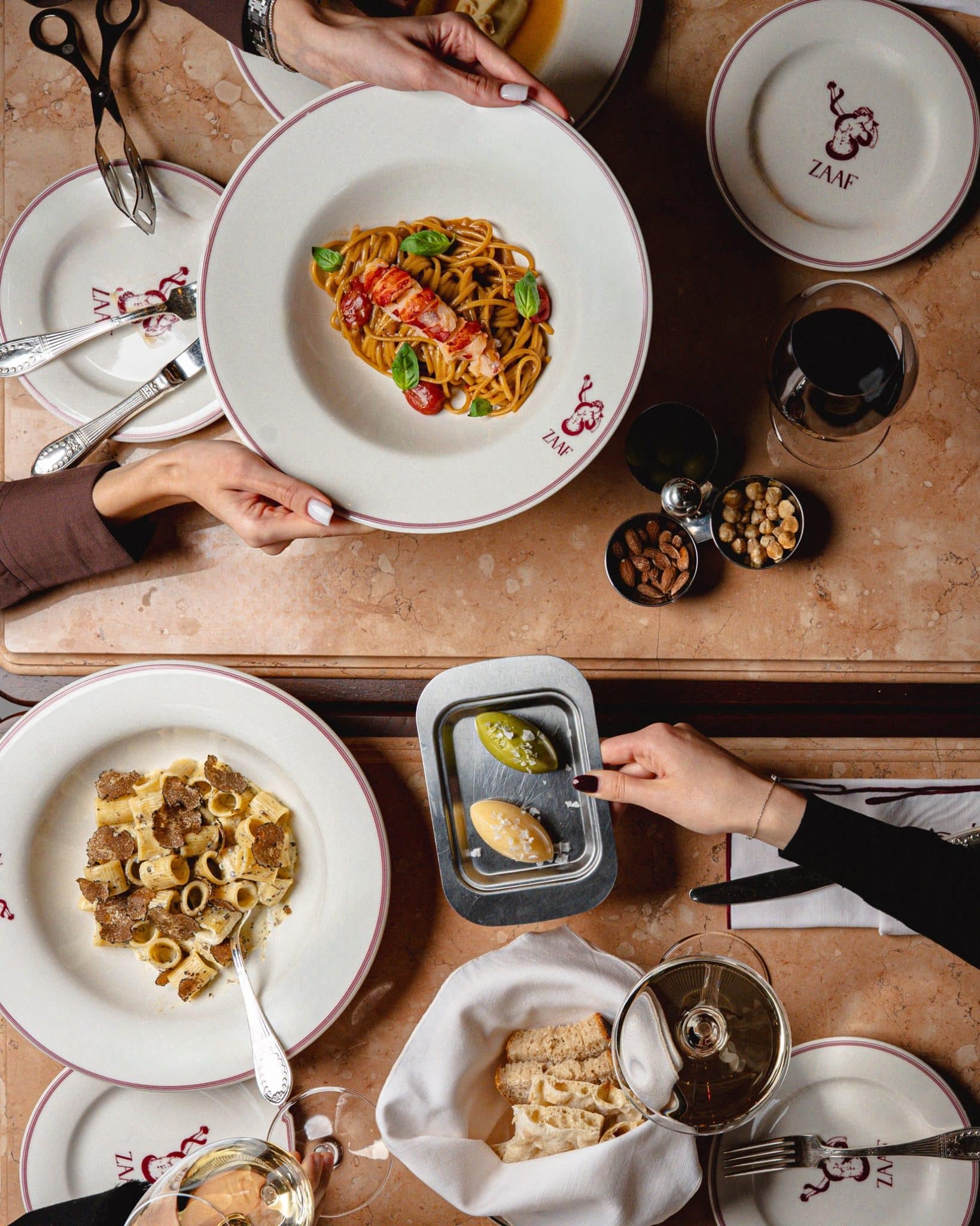 Zaaf e un loc primitor, sofisticat, cu aer de bistro european frumos „îmbrăcat”. Banchetele roșii, detaliile clasice și atmosfera ușor cinematică îl fac să fie, fără dubiu, unul dintre cele mai instagramabile date spots din oraș. Arată impecabil! Nu e opulent, nu e teatral, dar are acel ceva special, care te farmecă din prima.