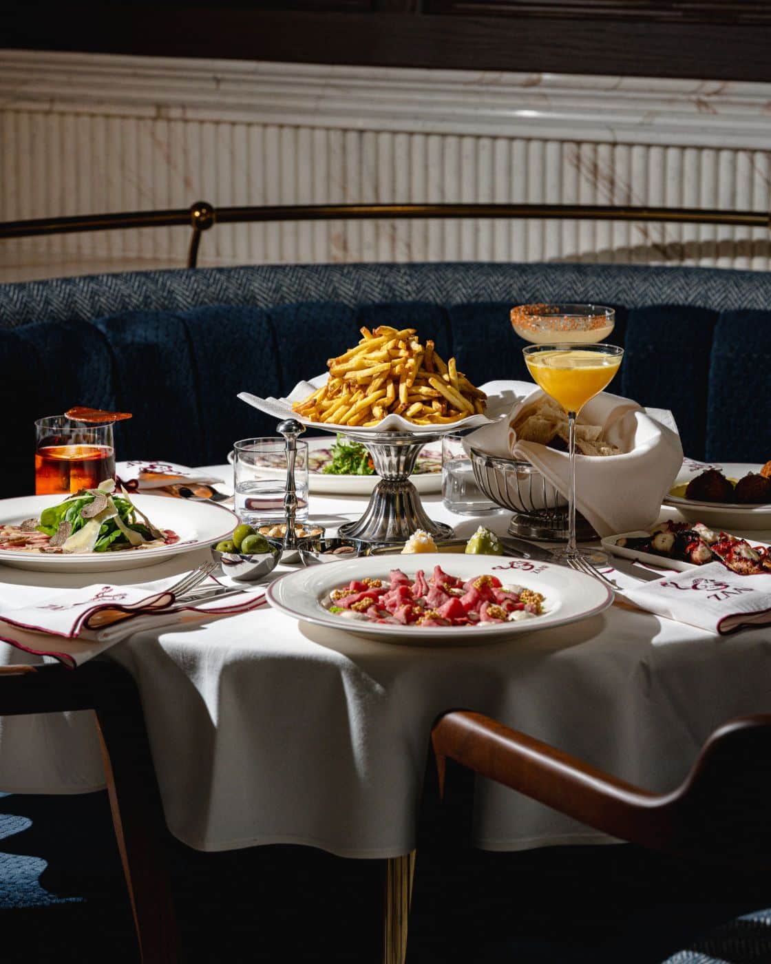 Conceptul mizează pe ideea de a împărți lucrurile bune. Meniul merge într-o zonă europeană premium, de braserie modernă, cu influențe franțuzești și mediteraneene: L’entrecôte Steak & Fries (unul din preparatele vedetă, delicios), Steak Tartare, Escargots, Filet Mignon au Poivre, Sea Bass, plus cartofii lor „1000 layers” care au devenit deja un mic signature dish. Iar vinurile și cocktailurile completează perfect meniul. Totul e gândit pentru seri în care tentația nu e ceva de evitat, ci chiar motivul pentru care ai ieșit.