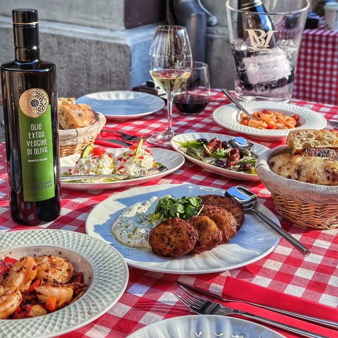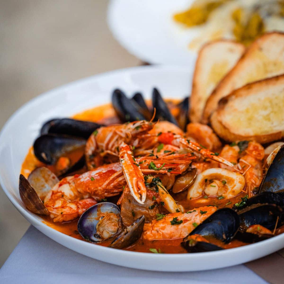 Meniul include o selecție de preparate tradiționale mediteraneene, de la fructe de mare proaspete și paste delicioase, până la deserturi rafinate. Mâncarea este foarte bună, iar porțiile sunt generoase. Crede-ne că te vei ridica mai mult decât satisfăcut/ă de la masă.
