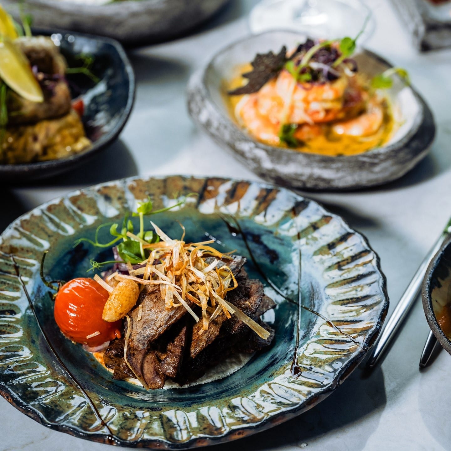 Printre specialitățile casei se numără Ras Asfour de vită, Swiss Steak Strips (fâșii fragede de mușchi de vită într-un sos de unt infuzat cu ierburi aromatice), dar și musaca grecească cu vinete și năut în straturi, într-un sos de roșii bogat, cu feta sfărâmată și murături de ceapă mică), un clasic grecesc reimaginat. La final, nu rata desertul! Au un delicios Pain Perdu cu înghețată și caramel și Knefe Bites!