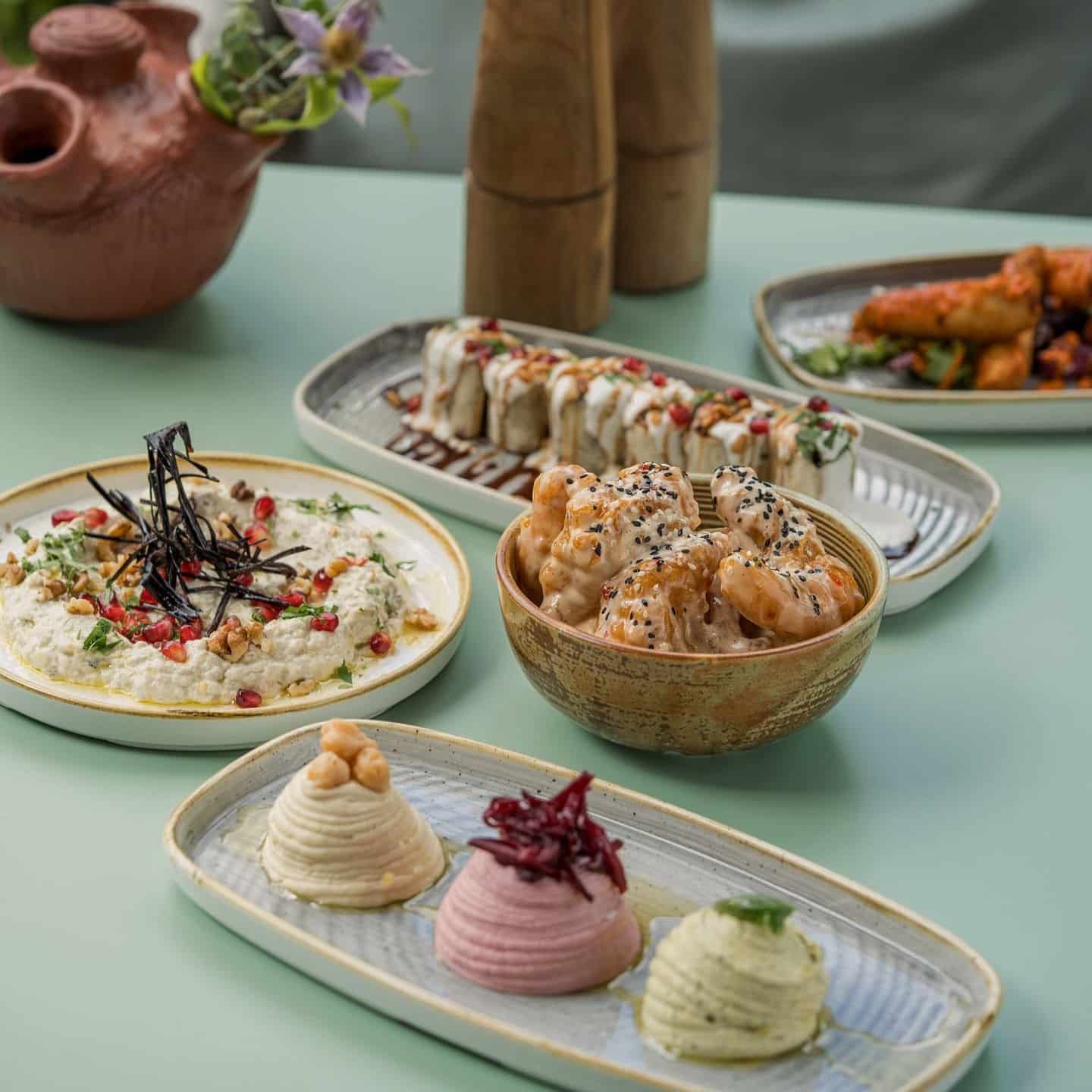 Restaurantul ne propune „The Oriental Sharing Experience”. În buna tradiție libaneză, aici mâncarea e gândită anume pentru a fi împărțită. Sub conceptul de meze, au o mulțime de preparate tradiționale reinterpretate, absolut delicioase! Noi am învățat de la ei chiar și cum ar trebui savurate: direct cu mâna, folosind lipia făcută-n casă în loc de tacâmuri, luând câte puțin din toate. Salatele sunt mereu side dish, niciodată fel principal. Iar când amesteci preparatele, in general preparatele reci se combină cu alte preparate reci, iar cele calde între ele. Niciodată cald-rece sau invers…