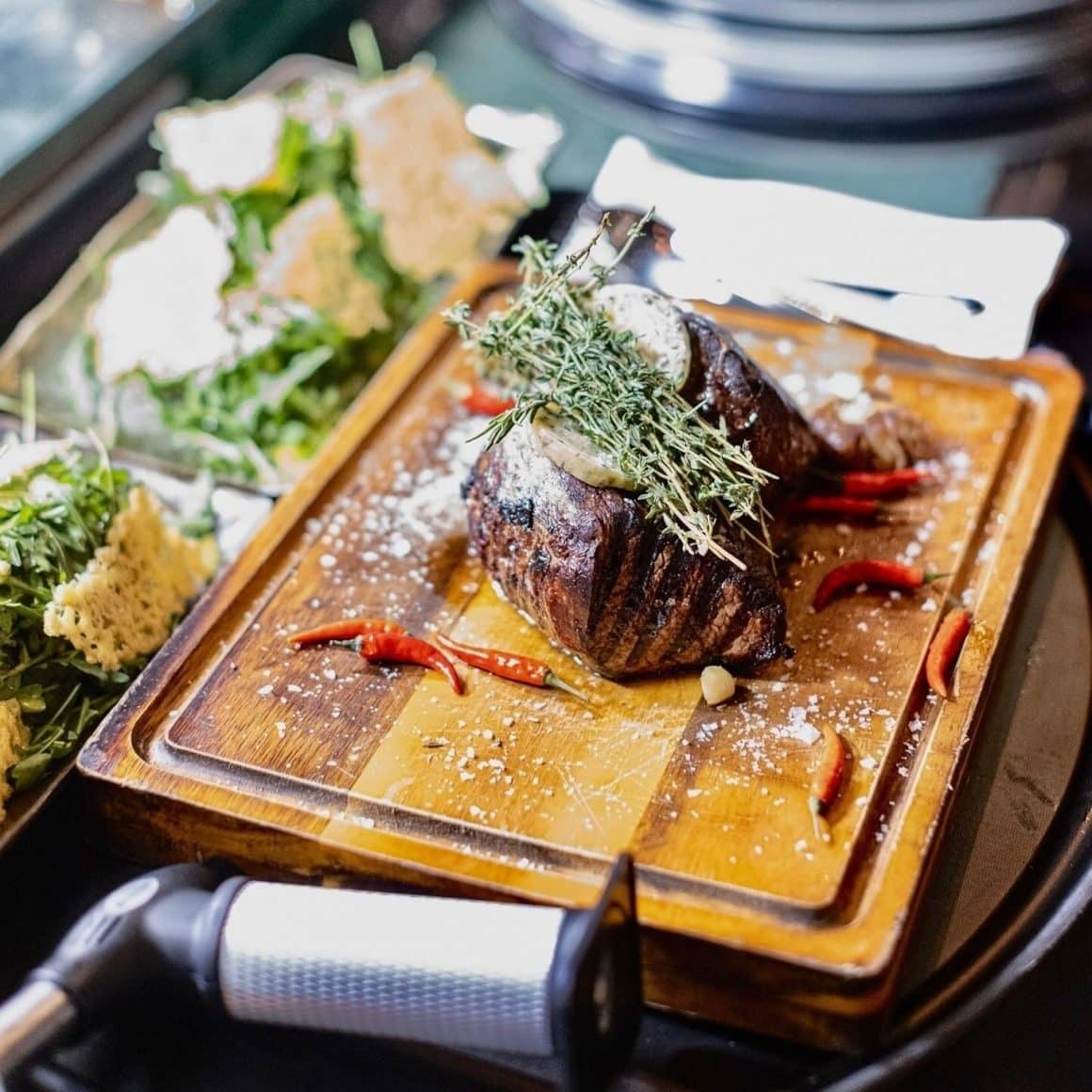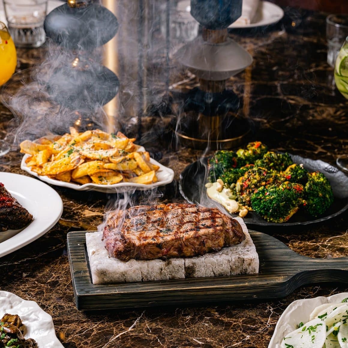 Ce rămâne neschimbat? Focusul pe vită. Ai în continuare vitrina de la intrare cu selecția de carne maturată, pe care ți-o alegi și ți-o gătesc fix cum vrei tu. Ribeye, tomahawk, T-bone – toate sunt acolo, suculente, gătite corect, fără să-și piardă identitatea în sosuri inutile. Trebuie neapărat să încerci și burgerii suculenți, din vită Black Angus, cu ceapă caramelizată și o avalanșă de Cheddar.