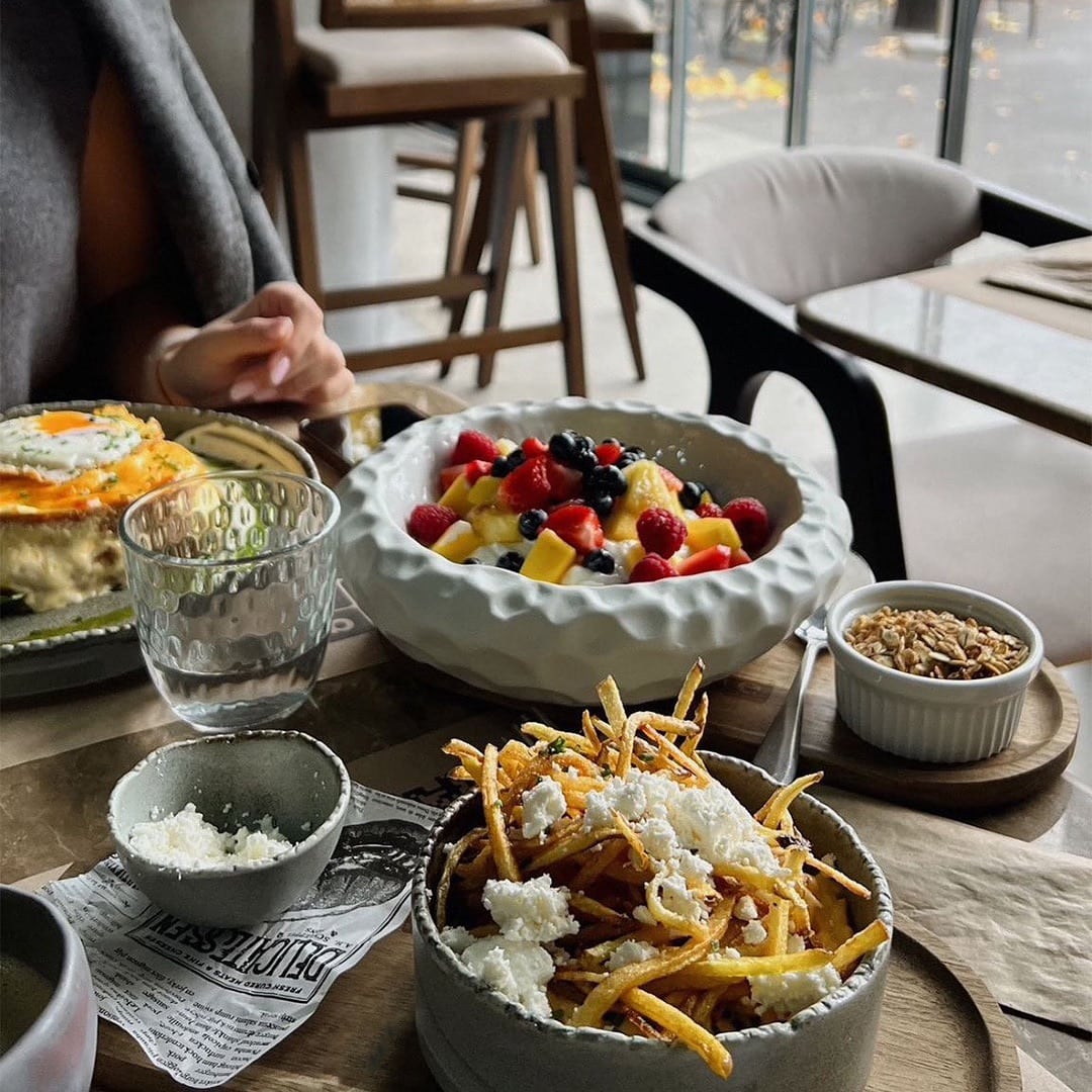 Chiar în Agora Floreasca, Matinée e unul din cele mai drăguțe restaurante din Floreasca unde să-ți începi ziua. Și asta fie că ești o persoană matinală și apreciezi un mic dejun gustos și sățios, fie că preferi mai degrabă un brunch târziu. Aici servesc micul dejun aproape toată ziua – de la 8.30 la 18.00. Și e pliiin de bunătăți. Opțiuni tipice micului dejun, dar cu un twist gurmet. Au ouă în fel și chip – de la French omelette cu caviar, la Croque Madame, scrambled eggs cu french fries și brânză feta (unul dintre bestseller-uri), Shakshouka, sau chiar steak and eggs pentru că… de ce nu? Lor li se adaugă salate fresh și delicioase (de exemplu cu halloumi și quinoa), boluri Açaí, pancakes, smoothies și multe altele.