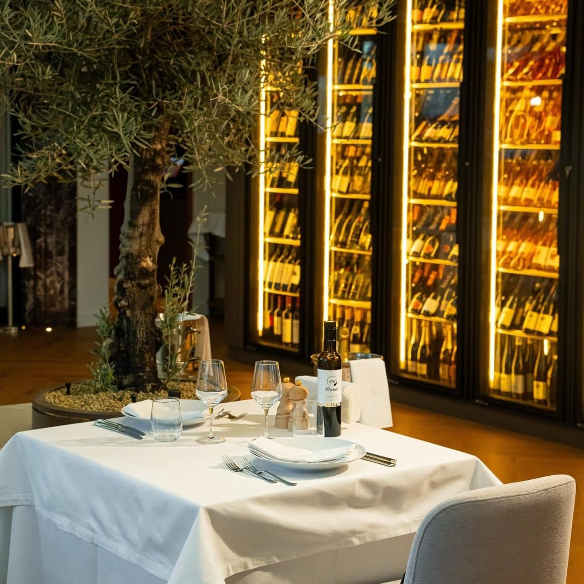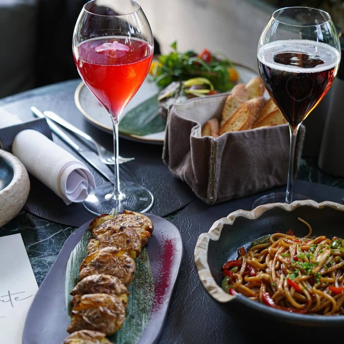 Meniul e internațional cu influențe asiatice și mediteraneene – atent lucrat, cu preparate care arată spectaculos, dar nu uită că e vorba, totuși, de gust. Ai pește, wagyu, foie gras, paste, deserturi cu poveste – fiecare farfurie e parte din scenografie. Bucătăria e „discretă”, dar deschisă – cum o numesc ei – și te invită într-un mic spectacol culinar fără artificii de dragul atenției. Iar barul e un capitol în sine. Nu doar pentru că arată bine, ci pentru că băuturile chiar sunt lucrate. Cocktailurile sunt creative, echilibrate, cu poveste – nu doar băuturi colorate cu nume catchy.
