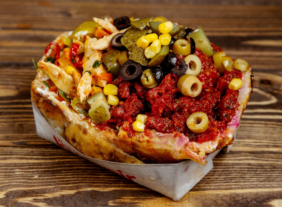 Sigur ai mai mâncat cartof copt până acum, dar Kumpir-ul îți va schimba definitiv viziunea asupra banalului cartof! Este un gen de street food foarte îndrăgit în Turcia, pe care îl găsești peste tot. Un cartof gigantic este copt, tăiat pe mijloc, apoi interiorul moale este amestecat cu o porție generoasă de unt și brânză kaşa. Iar apoi ți se prezintă o mulțime de variante de ingrediente pe care le poți adăuga după plac – carne, legume, mai multă brânză, sosuri, inclusiv iaurt, ketchup, porumb fiert, felii de cârnat, cous cous, morcov ras, măsline, kisir (salată bulgărească) etc. Delicios!