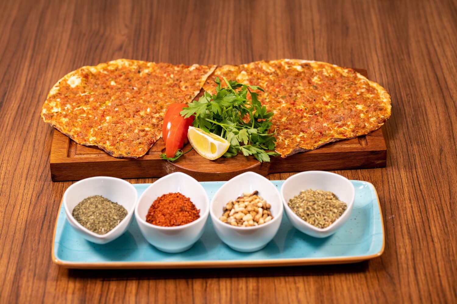 Cui îi place pizza? Lahmacun este, în esență, un fel de pizza turcească care are o crustă subțire crocantă și este acoperită cu un sos proaspăt delicios din roșii, ardei, ceapă, carne tocată (de obicei de miel sau de vită) și ierburi aromate. Deși poate arată ca o pizza, îi lipsește un ingredient esențial pentru pizza – brânza! Deoarece aluatul este foarte subțire, acest preparat poate fi rulat ca o shaorma, și este mai degrabă ceea ce numim un wrap. Se servește deseori cu murături, ardei iute, roșii sau vinete prăjite.