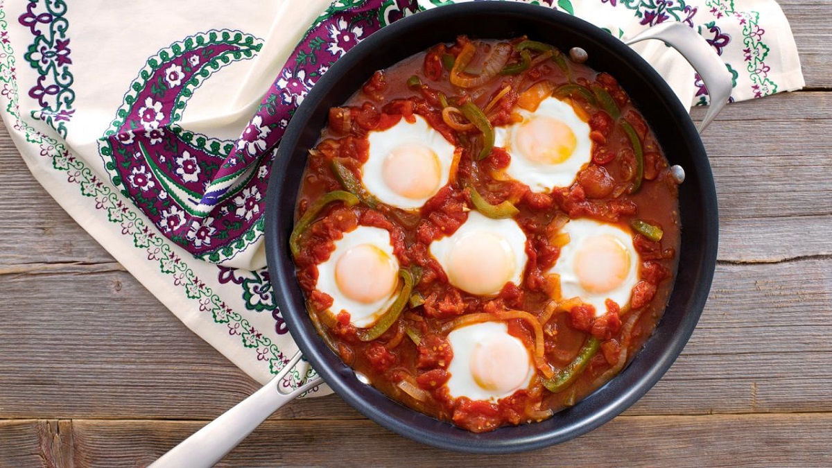Este un preparat foarte simplu și gustos, servit la micul dejun, foarte asemănător cu Șakșuka.
