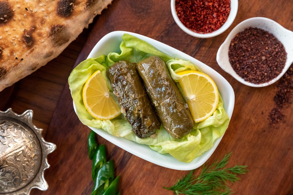 Varianta cu carne este denumită sarma, exact ca la noi, însă în acest caz frunza de viță este umplută cu carne de miel tocată cu orez.