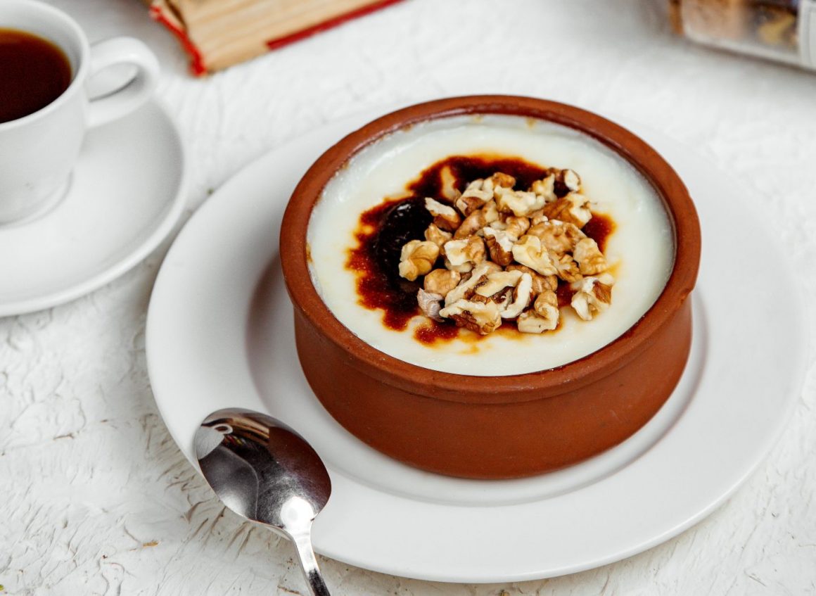 Yiaourti Me Meli înseamnă, literalmente, iaurt cu miere, servit deseori împreună cu nuci. Este un preparat ideal atât la micul dejun, cât și ca desert, cremos și plin de aromă. Gustul acrișor al iaurtului grecesc se îmbină de minune cu dulceața mierii și aroma pământie a nucilor. O combinație excelentă!