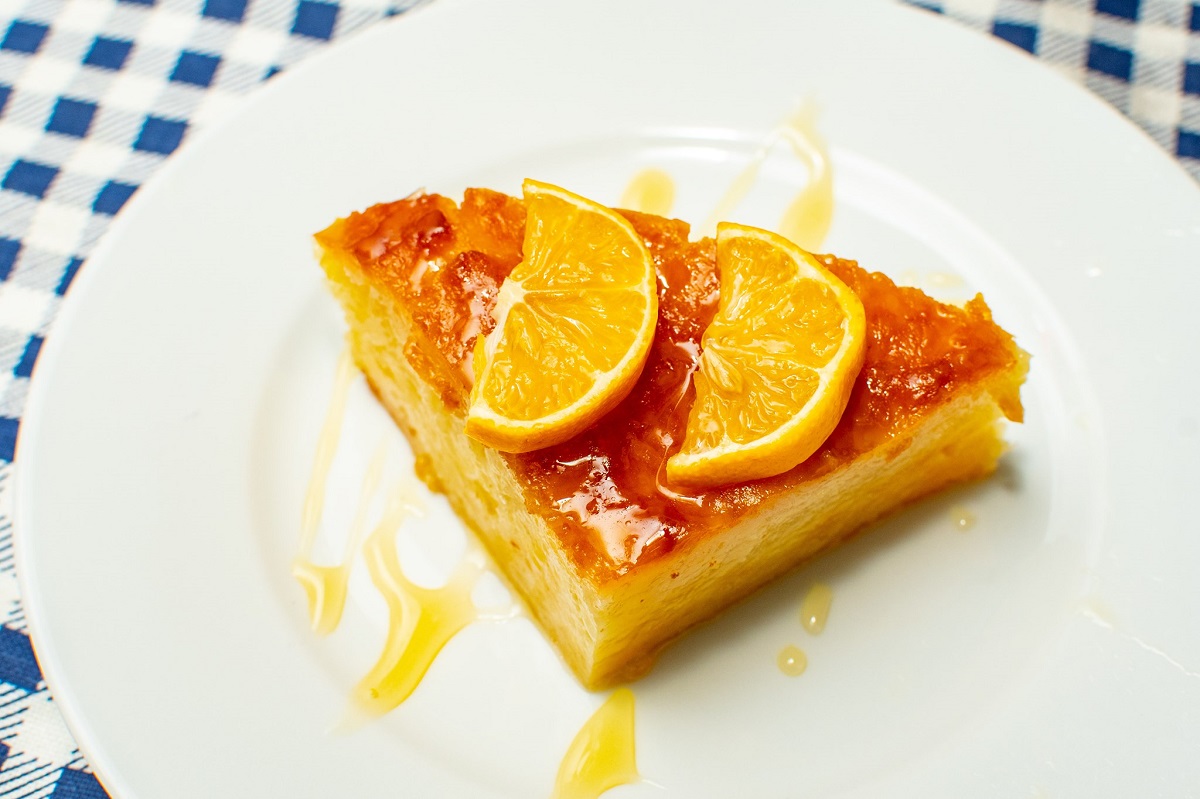 Portokalopita este o prăjitură din foi de aluat fărâmițate și apoi „lipite” la loc, amestecate cu o umplutură din ou, vanilie și iaurt, și însiropată la final cu sirop de portocale. Este o prăjitură foarte pufoasă și extrem de aromată, care se servește la fel de bine caldă sau rece.