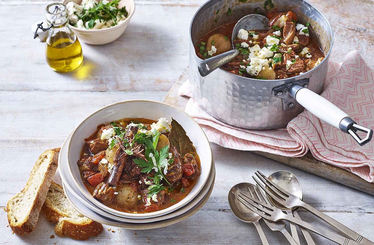 Specifică insulei Corfu, Stifado este o tocană de vită cu arpagic, sos roșii și vin roșu, cu scorțișoară. Este genul de mâncare slow food, lăsat să se gătească ore bune, până se îngroașă sosul, așa încât carnea să fie suculentă și fragedă și sosul scăzut. Ai șanse mai mari să găsești acest preparat mai degrabă la tavernele unde mănâncă localnicii, decât în cele turistice (pentru că durează foarte mult să se facă).