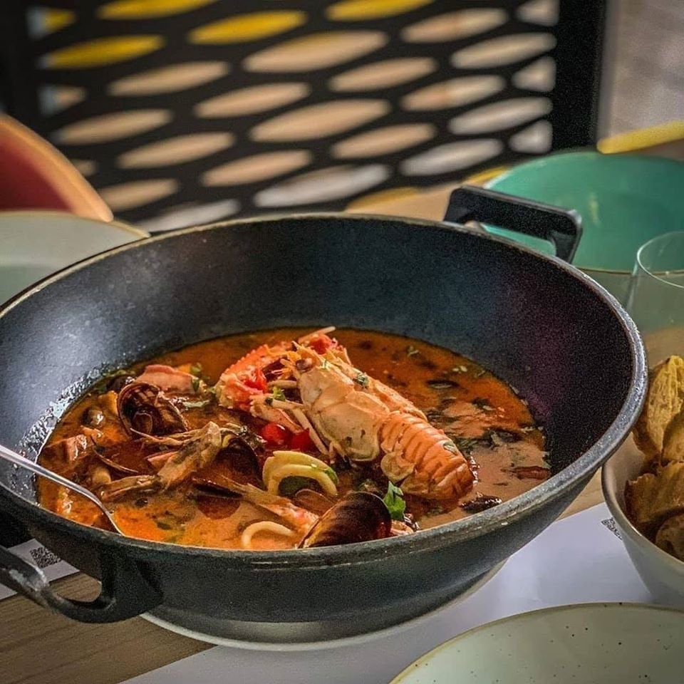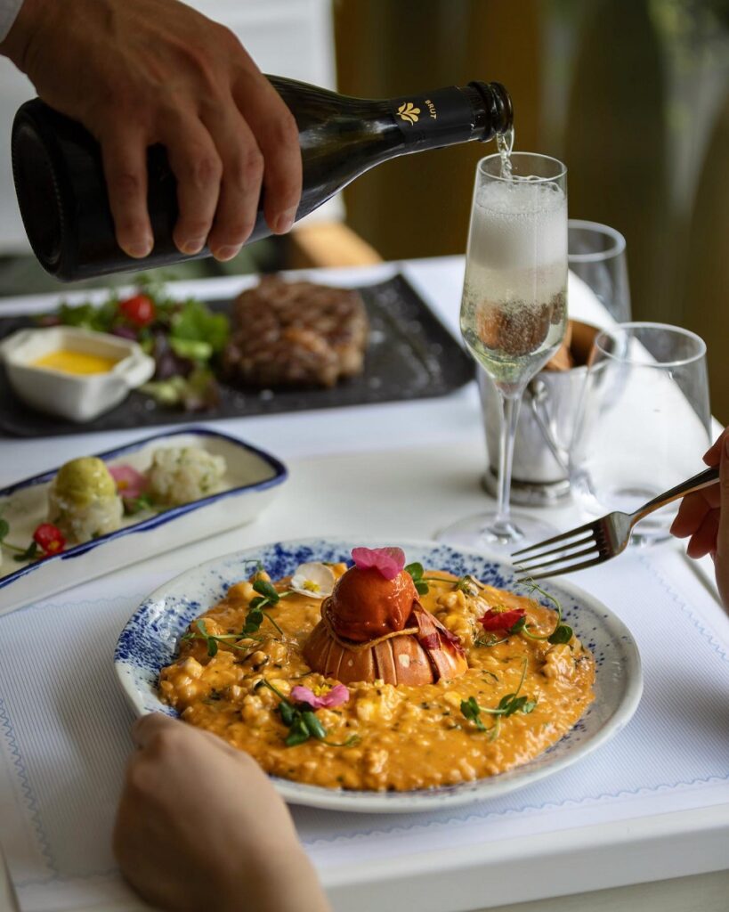 Hai să-ți povestim cu ce ne-am răsfățat noi… o porție de Tartar de pește Lirio cu căpșuni și mango și Creveți cu usturoi, ca starter. A urmat o porție de Supă cremă de fructe de mare cu carne de homar (ceva absolut delicios!). Și… un perfect match: Linguine con langosta. Am mai servit și un orez cremos care se îmbină perfect cu bucăți suculente de homar (o carne dulce) și o varietate de fructe de mare – simfonie de arome marine! Plus Caracatiţă pregătită în stil tradiţional portughez, la cuptor, cu usturoi şi ulei de măsline, servită cu migas de broa și cartofi „à murro”. Au, în plus, tot felul de specialități și preparate inedite. De exemplu, Stridii portugheze, Scoici cuțit, Creveți carabineiro (Scarlet prawns) sau Curry în stil portughez.