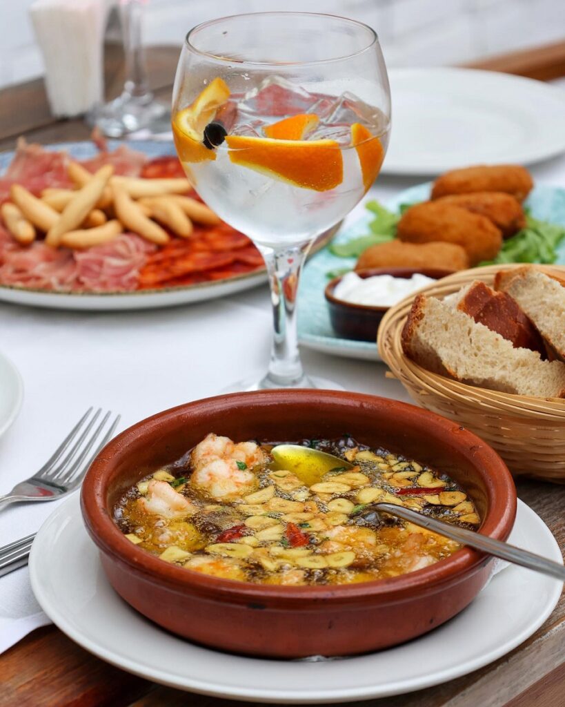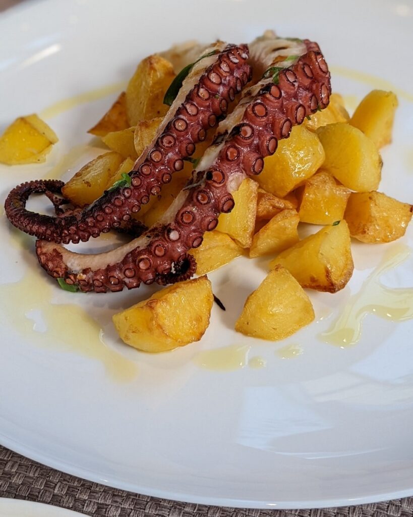 Pe lângă asta, au și alte mâncăruri deosebite. De exemplu, Gambon roșu de Argentina al ajillo – o „mâncărică” de creveți decorticați, cu usturoi, ardei chilli, măsline și pătrunjel. Sau Caracatiță a la Gallega – caracatiță fragedă din Maroc, tăiată rondele, pe pat de cartofi nature, cu ulei de măsline și boia dulce afumată. Toate sunt bune!