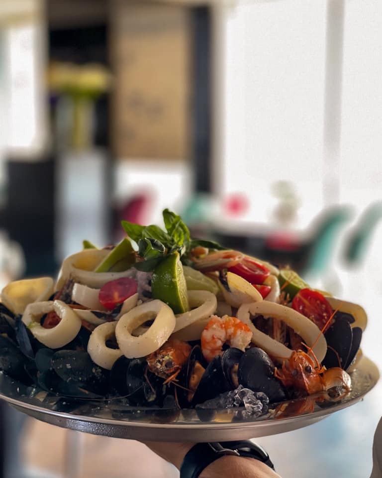 La ei vei găsi tot felul de specialități proaspete, delicioase. Nouă ne-a plăcut foarte mult platoul cu fructe de mare la plită, de împărțit cu prietenii. Are calamari, caracatiță, creveți black tiger, sepie, legume pe plită, mix de salate verzi și sos alioli. Delicioase sunt și midiile, creveții Saganaki, sau caracatița cu legume și sos pesto (fragedă și suculentă). Iar calamarul la plită cu dovlecei sote, roșii coapte și sos mediteraneean este minunat! Au multe, multe bunătăți în meniu și toate savuroase.