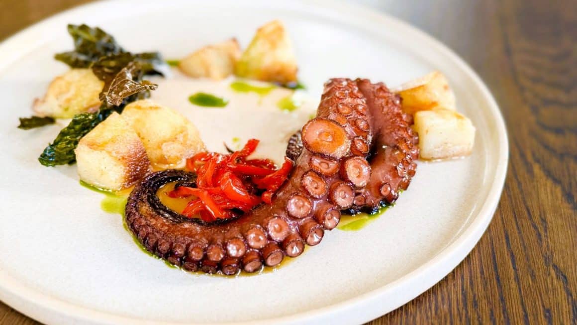 Simplitatea e adesea înșelătoare. Uneori, cele mai curate farfurii sunt cele care cer cel mai mult timp – nu pentru efect, ci pentru echilibru. Caracatița, de exemplu, e unul dintre cele mai cerute preparate. Pare directă: tentacul gătit corect, o cremă, câteva legume. Dar în spate e o bază pe care o numim, fără glumă, „supa primordială” – un lichid de poșare pe care îl construim în straturi, în mai multe zile, și care adună peste 12 ingrediente. Apoi, timpul de odihnă, de marinare, de grill. E o întreagă coregrafie care începe cu două-trei zile înainte.