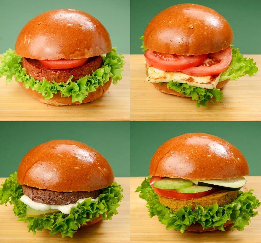 Vrei exemple? Păi ar fi Burger C (patty din fasole roşie, ciuperci, ceapă, cartof şi pătrunjel, cu salată, castraveciori murați şi maioneză vegetală), Burger D (patty din orez brun, mix de semințe, busuioc, cu guacamole) sau Burger H (patty din năut, tofu, ardei capia şi ierburi de Provence, cu rucola şi maioneză vegetală) – ca să enumerăm doar câțiva.