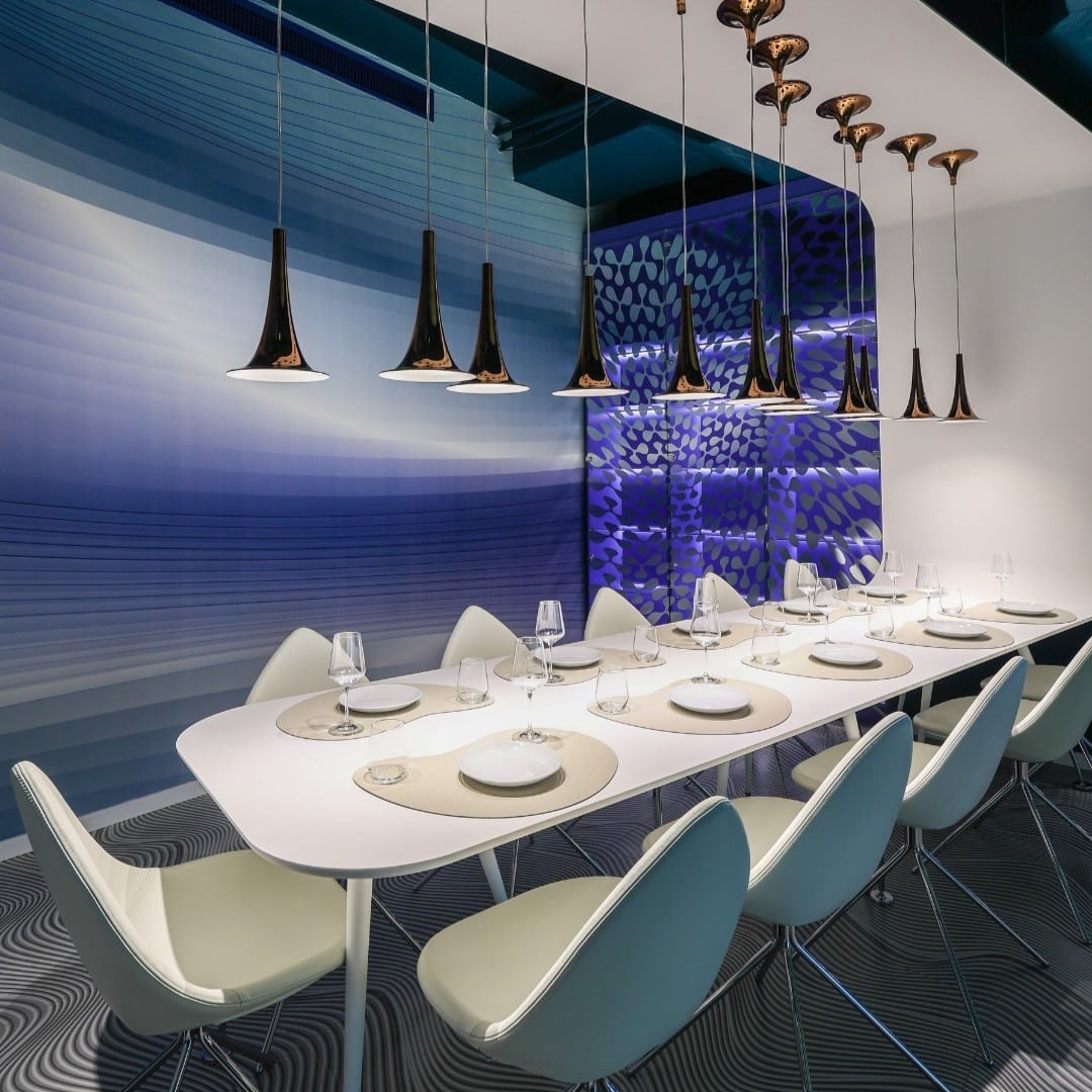 Un alt local premium din Floreasca (mai exact, chiar la Agora Floreasca), care arată grozav! Decorul e conceptualizat de studioul lui Karim Rashid (celebrul designer de interior), cunoscut pentru stilul său colorat şi bogat în detalii creative. Lucru pe care îl vei observa și în cazul proiectului său din Bucureşti, unic în ţară. Aici, interiorul transpune lumea acvatică într-un mod cu totul deosebit și setează scena pentru preparatele deosebite. Drept pentru care este și unul dintre cele mai instagramabile restaurante din Capitală.