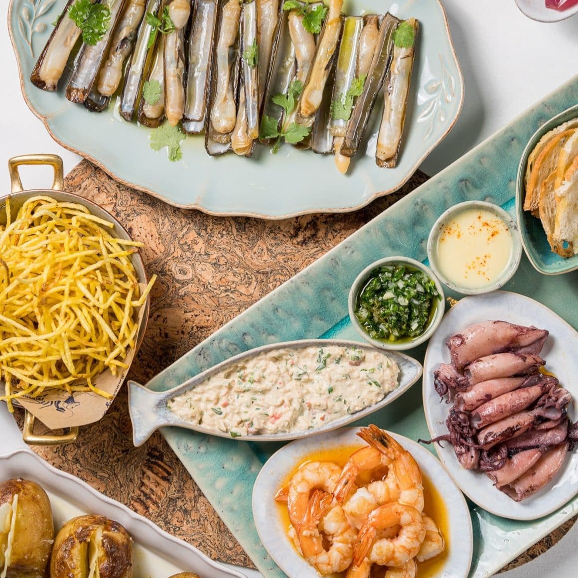 Meniul, un mix de rețete tradiționale și bucătărie modernă, a fost creat de o echipă de bucătari portughezi. În funcție de sezon, în restaurant se aduce cea mai bună captură de pe coasta portugheză a Oceanului Atlantic și din Insulele Azore. Iar dacă îți dorești ceva cu adevărat special, poți alege din acvariu homari, crabi sau diverse tipuri de scoici cu o carne incredibil de fină și delicioasă.