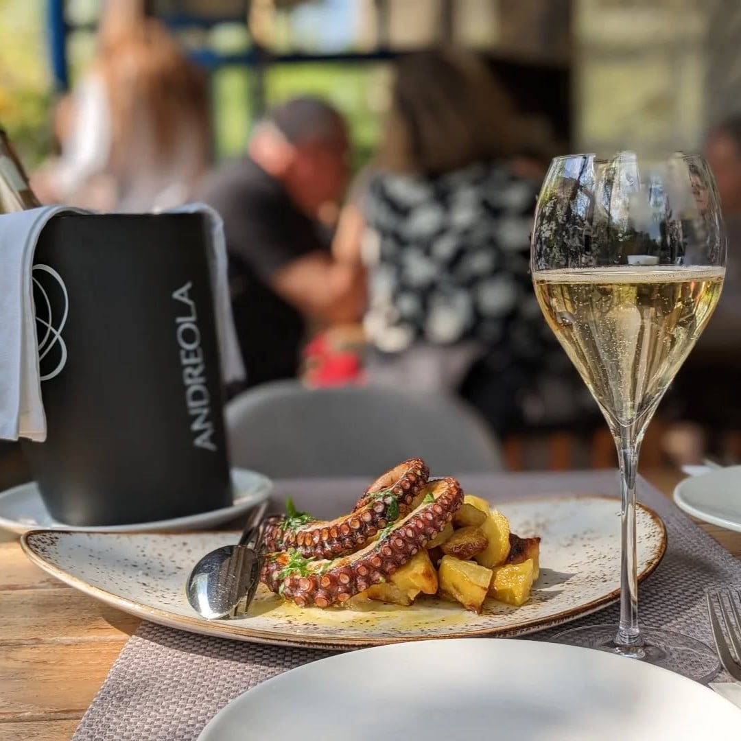 Doradă și biban la grătar, platouri cu fructe de mare, midii în vin, tartar de ton, paella și supa de pește. Și evident, vinul alb, nelipsit.