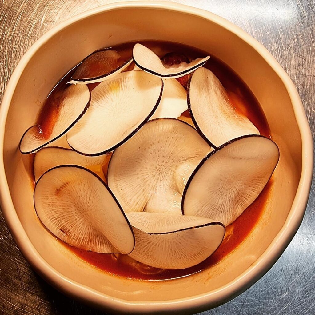 Ce a rămas este fix asta: dorința de a deveni un loc de întâlnire pentru localnicii și turiștii care apreciază și înțeleg gastronomia dincolo de a-și potoli foamea cu „ceva, orice”. A rămas încăpățânarea de a oferi preparate culinare din ingrediente cu gust deplin, a căror sursă este una de încredere și cu o trasabilitate ușor de verificat. Iar meniul se schimbă frecvent, în funcție de sezonalitate. Au și o băcănie în restaurant, deci poți pleca c-o traistă plină și după ce-ai mâncat bine la ei în locație.