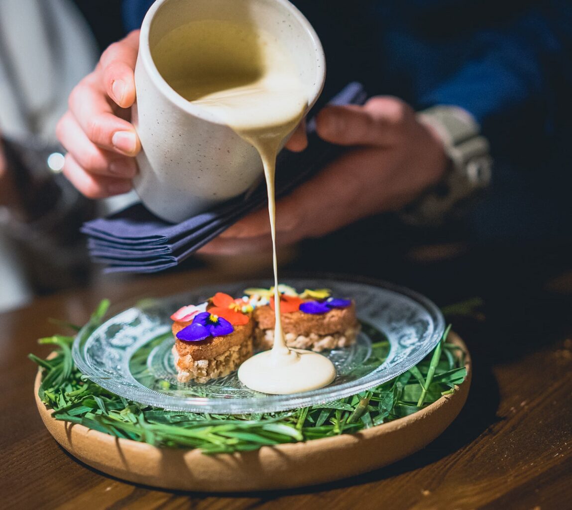 Deși de inspirație franțuzească, meniul este eclectic și pune accent pe nutriția de calitate, preparate echilibrate și ingrediente alese. Și-au dorit să readucă sezonalitatea în farfuria de la restaurant, să opteze cât mai mult pe tot ce e proaspăt și local, să evite risipa și să opteze pentru varietate și savoare. Iar asta se vede în preparatele lor foarte gustoase! Pontul nostru: încearcă obrăjorii de vită – ți se topesc în gură, iar păstrăvul este excelent!
