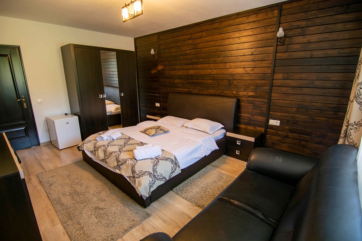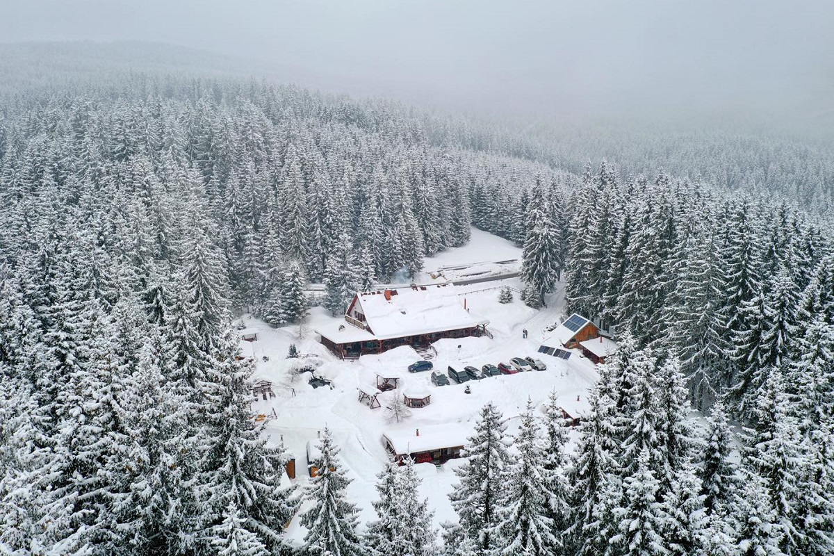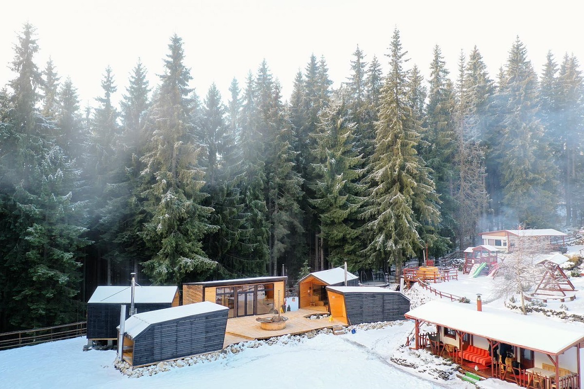 Fiecare cabană are cinci camere duble cu baie proprie, și este utilată cu tot ce îți trebuie. Ai TV, bucătărie dotată cu de toate, un living mai mult decât generos, terasă, foișor cu grătar, ciubăr încălzit și saună. Au chiar și o sală de jocuri, pentru toate vârstele. Plus că au curte mare și, chiar dacă mai sunt alți oaspeți cazați, fiecare grup se poate bucura de propria intimitate. Iar dacă ai un spirit mai „aventurier”, poți face trasee în zonă ori merge în plimbare.