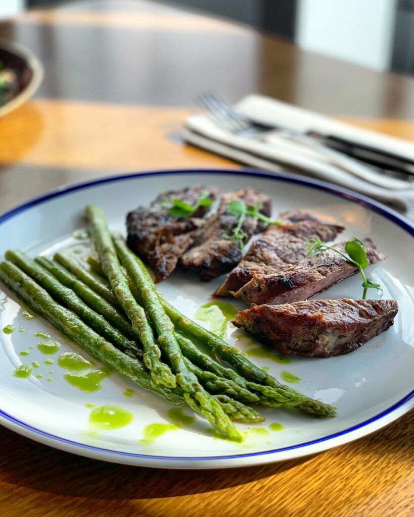 - La Nor – Sky Casual Restaurant găsești un Sparanghel à la française pentru un mic dejun pe stil nobil – cu ou poșat, jambon fin și sos de parmesan. Ori mergi la prânz sau o cină și comandă o friptură excelentă (mușchiul de vită argentiniană e foart gustos) în compania unei porții de Sparanghel în unt. Delicios!