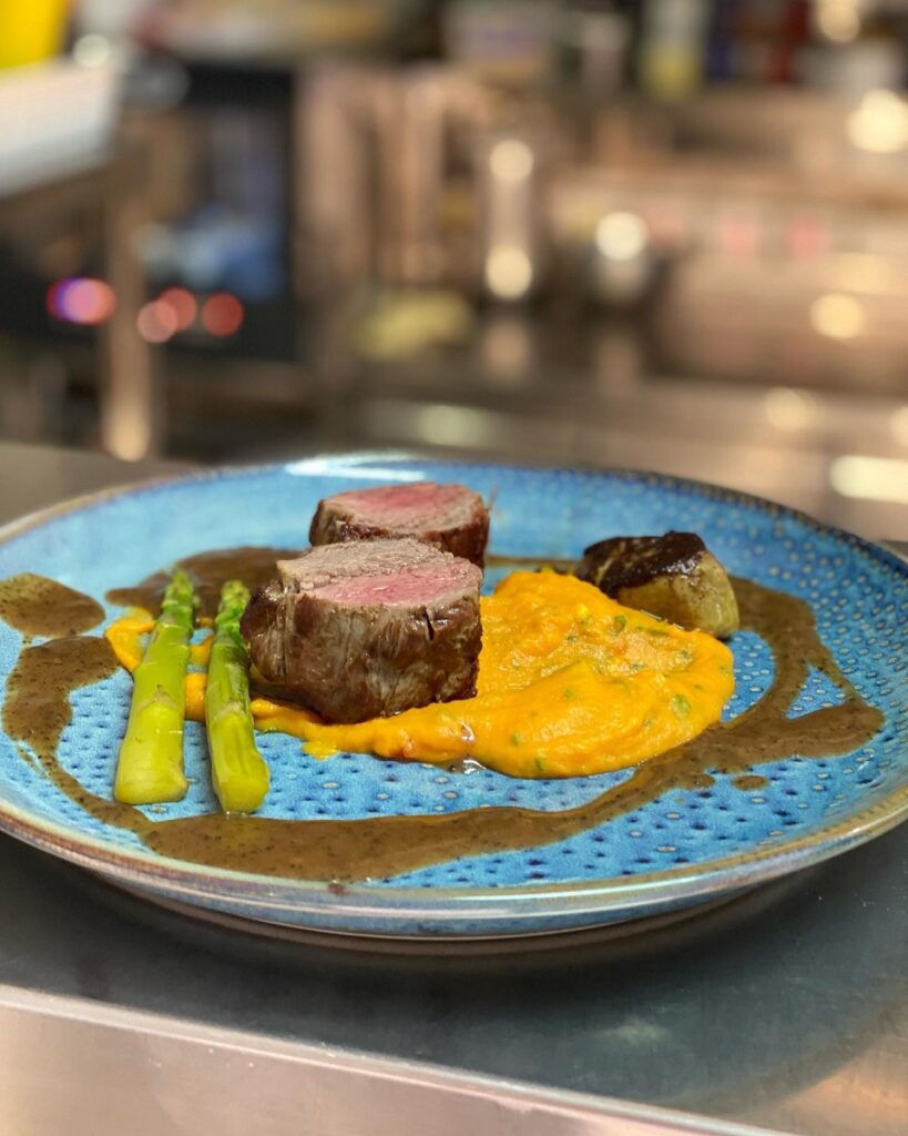 - La The Grill au un Risotto cu șofran și sparanghel excelent, dar și sparanghel la grătar, de savurat ca garnitură la o carne suculentă, iar la Restaurant O’gradá am mâncat un Mușchi de Vită (Australia aged) excellent (!) – cu piure de țelină, sparanghel, baby morcovi și sos de vin.