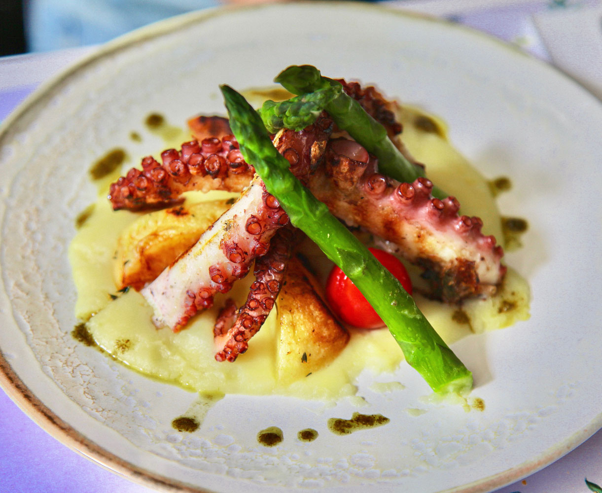 - Și la Fior di Latte au în meniu câteva preparate excelente în care sparanghelul își face loc în farfurie. Ca de exemplu, Caracatiță la grătar, cu sos de cartofi și sparanghel. Neobișnuită asociere de gusturi, preparatul se înscrie în categoria surf & turf. Sau poate preferi un Somon la cuptor cu sparanghel si sos Mediterranean. Asocierea somon-sparanghel, în bucătăria sudic-continentală, este deja una clasică. Preparat la cuptor, peștele rămâne suculent, în vreme ce sparanghelul, ușor crocant, vine „în farfurie” cu plusul său de prospețime. Și tot la ei poți mânca o Supă cremă de sparanghel și broccoli, cu spumă de migdale, fină și plină de savoare!