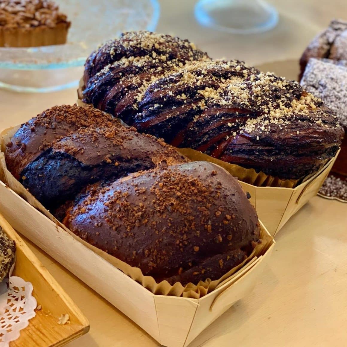 De Crăciun, logica asta de „puține ingrediente, dar bune, și multă răbdare” se mută firesc în zona de cozonaci. Lucrează cozonaci cu maia și dospire îndelungată, cu aluat opărit, adică exact genul de cozonac în care simți că aluatul are gust, nu doar umplutura. Au variante cu nucă și prună uscată – foarte safe pentru cine vrea ceva apropiat de clasic, dar cu un plus de aromă fructată – și mai multe tipuri de babka (cu ciocolată și praline, însiropată), pentru cei care vor textura aia moale și bogată.